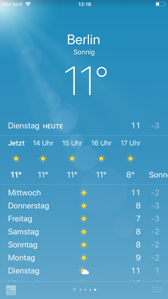 Wenn die Erwerbsarbeit nicht wäre, die Wetteraussichten wären glatt ein Grund, mal wieder nach Berlin zu reisen.